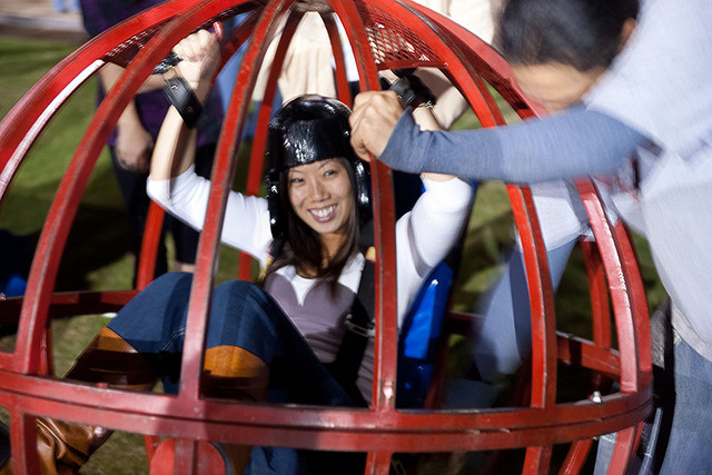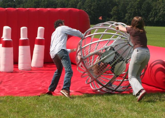 Bij dit leuke en nieuwe spel bent u zelf de bowlingbal! De deelnemer neemt plaats in een stalen bal. Hierbij komt de deelnemer in een kuipstoel te zitten en wordt hij/ zij vastgezet met behulp van racegordels. Tevens krijgt de deelnemer een helm op.