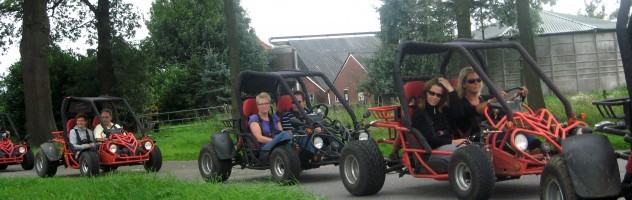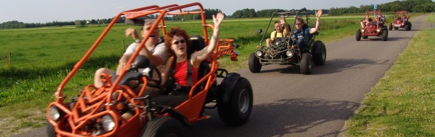 • Buggyrally, met onderweg een drankje, groepsopdrachten en vragen.